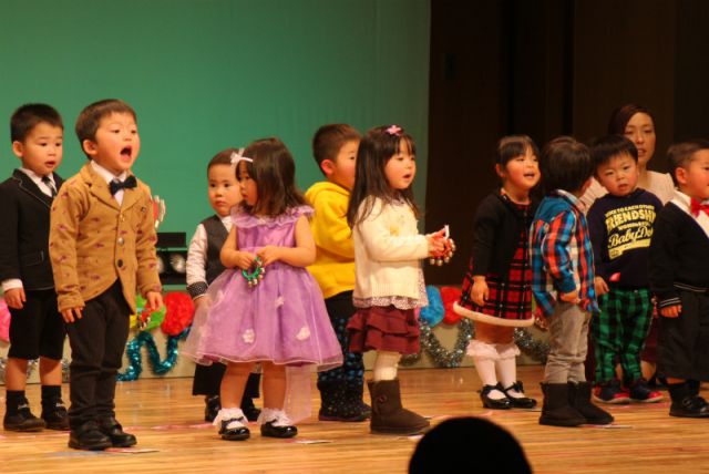 12月23日(天皇誕生日)バディクリスマス発表会が磐田市アミューズ豊田「ゆやホール」にて行われました。早朝より並ばれた方を初め沢山の保護者の方達をお招きをし、子供たちからのクリスマスプレゼントとし日頃の練習の成果を見て頂きました。立っているだけでも可愛いセミジュニアの子供たちや1年の成長ぶりを見せてくれたジュニアクラス。歌や楽器の演奏や、オペレッタでは「シンデレラ」を発表してくれたミドル。また長いセリフそして素晴らしい演技を見せてくれたシニアの「ヘンデルとグレーテル」など、各クラスの素晴らしい発表会でした。