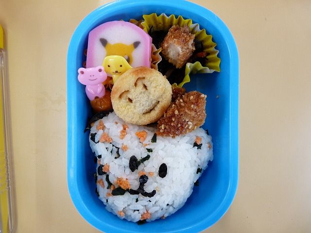 お昼のお弁当の時間こどもたちがお弁当箱のふたを開けると美味しそうな、そして食べてしまうにはもったいないようなお弁当の一部を写真に撮らせていただきました。