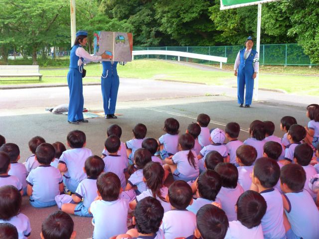 交通安全教室を交通安全センターにて、磐田警察署交通安全指導員の方々に信号の見方・道路の渡り方など事故に合わないように丁寧に教えていただきました。