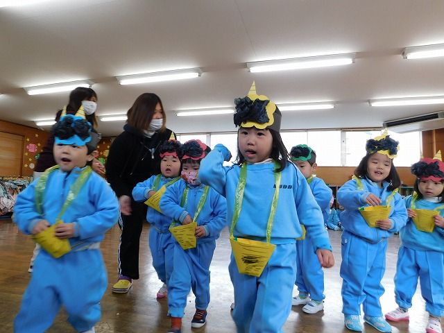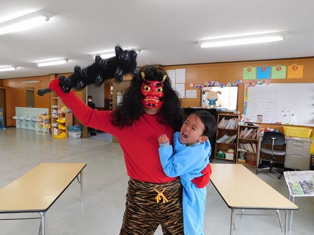 2月1日(金)二日早い節分豆まきを行いました。すると突然赤鬼が現れ暴れましたがみんなが豆をぶつけ鬼は退散。みんなの「泣き虫鬼や・わがまま鬼」も追い出せたと思います。