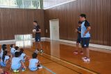 ラグビーワールドカップで日本代表も快進撃をしている中、ヤマハジュビロ・ラグビー部の方々によるラグビー教室が開かれ、子供たちもいつもと違ったボールの動きに悪戦苦闘。楽しいひと時を終えました。
